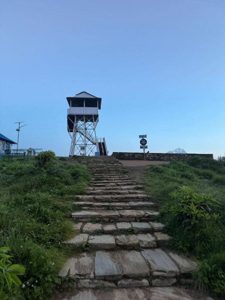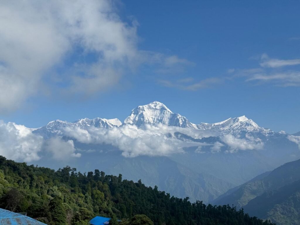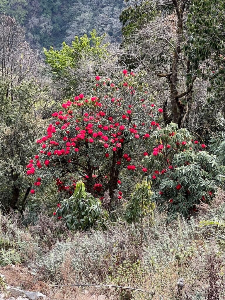 ‘on high scenic hills covered within rhododendron forest in the shade of Annapurna Himalaya’